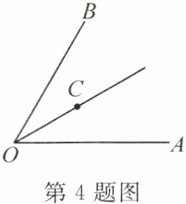 4. 如图,$ \angle AOB = 60^{\circ} $,$ OC $ 平分 $ \angle AOB $. 如果射线 $ OA $ 上的点 $ E $ 满足 $ \triangle OCE $ 是等腰三角形,那么 $ \angle OEC $ 的度数为.