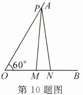 10. 如图,$\angle AOB = 60^{\circ}$,点$P$在边$OA$上,$OP = 12$,点$M$,$N$在边$OB$上,$PM = PN$。若$MN = 2$,则$OM =$