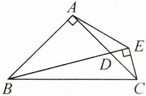 5. 如图,$ △ABC $ 为等腰直角三角形,$ ∠BAC = 90^{\circ} $,$ AB = AC $,D 是 AC 上一点. 若 $ CE ⊥ BD $ 于点 E,连接 AE. 求证:$ ∠AEB = 45^{\circ} $.