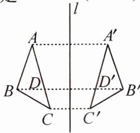 2. (2023·南充期末)如图,△ABC 与△A'B'C'关于直线 l 对称,连接 AA',BB',CC',其中 BB'分别交 AC,A'C 于点 D,D',下列结论:①AA'//BB';②∠ADB=∠A'D'B';③直线 l 垂直平分 AA';④直线 AB 与 A'B'的交点不一定在直线 l 上.其中正确的是 (