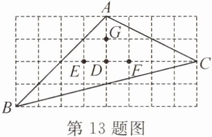 13. 如图所示的网格由边长相同的小正方形组成,点 A,B,C,D,E,F,G 均在小正方形的顶点上,则△ABC 的重心是(