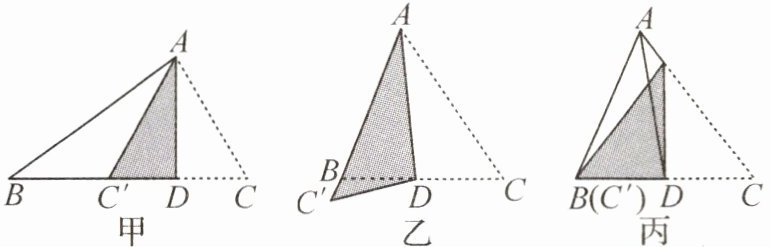 15. 下图是甲、乙、丙三位同学的折纸示意图(折叠后点 C 落到点 $C'$ 处)。