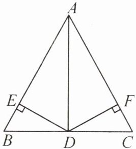 ∴∠BED=∠CFD=90°.在Rt△BDE和Rt△CDF中,{BD=CD,BE=CF,