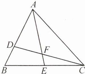 3. 【转化思想】如图,D,E 分别是△ABC 的边 AB,BC 上的点,$ AD = 2BD $,$ BE = CE $,设△ADF 的面积为 $ S_1 $,△CEF 的面积为 $ S_2 $. 若 $ S_{\triangle ABC}=6 $,求 $ S_1 - S_2 $的值.