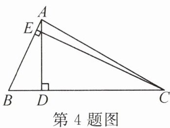 4. 教材母题:(教材 P10 习题 T7) 如图,在△ABC 中,若 $ AB = 2 $,$ BC = 4 $,则△ABC 的高 AD 与 CE 的比是