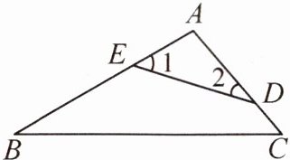 3. (教材 P13 练习 T2 变式)如图,点 $ E,D $ 分别在 $ AB,AC $ 上,若 $ \angle B = 30^{\circ},\angle C = 55^{\circ} $,则 $ \angle 1+\angle 2 $ 的度数为()