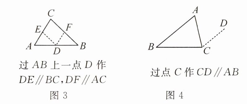(2) 请选用图 3 或图 4 证明三角形的内角和是 $ 180^{\circ} $.