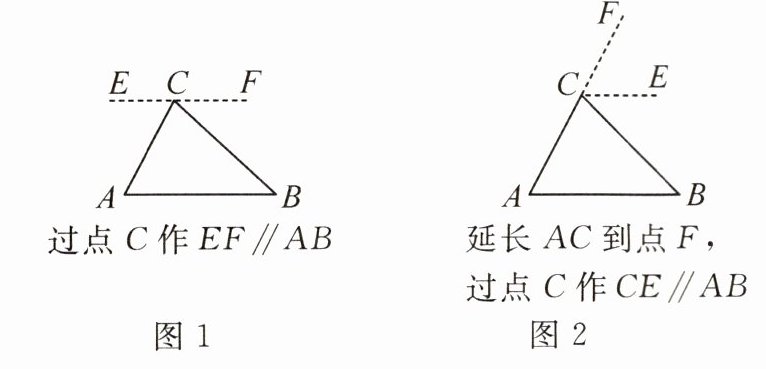 (1) 图 1、图 2 在证明三角形内角和的过程中应用的数学思想是