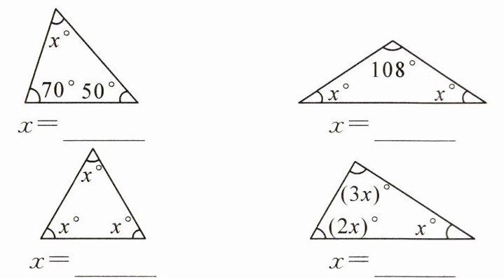 1. (教材 P16 习题 T1 变式)写出下列图形中 $ x $ 的值.