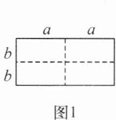 6. (2024·泸州期末)用两种不同的方法计算同一个图形的面积,可以得到一个恒等式。数学活动课上,老师展示了如图 1 所示的长方形纸片,它的长为 $2a$,宽为 $2b$,用剪刀沿图中虚线均分成四个小长方形,然后按图 2 的方式拼成一个正方形。请解答下列问题: