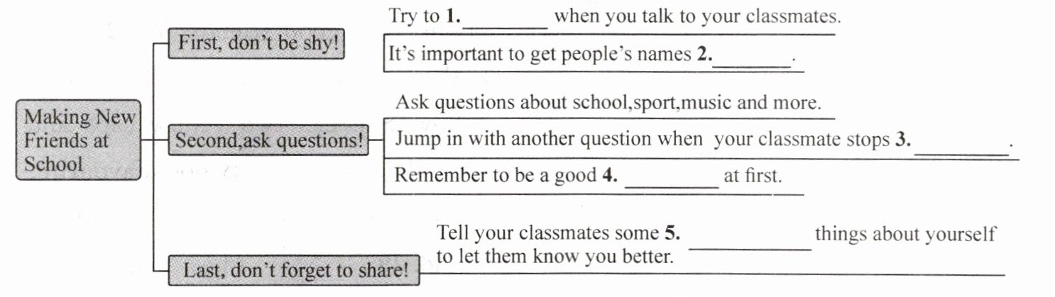 四、1. smile 2. right 3. talking 4. listener 5. interesting