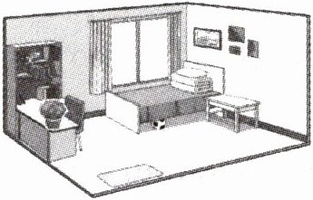 17. aren't any 18. is an egg 19. Are there any 20. No;there isn't 21. How many desks are 22. What does;have 23. Does;have 24. in front of 25. across from 26. next to