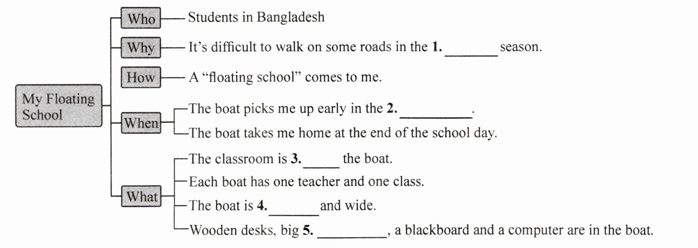 四、语篇解构 根据短文信息,完成下面的结构图。(每空一词)