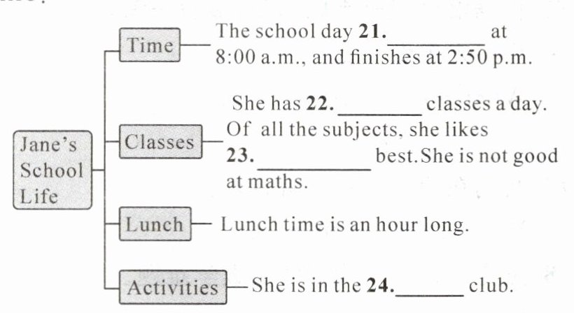 阅读短文,完成思维导图并回答问题。(注意:21—24 小题每空限填一词,25 小题 10 词左右)