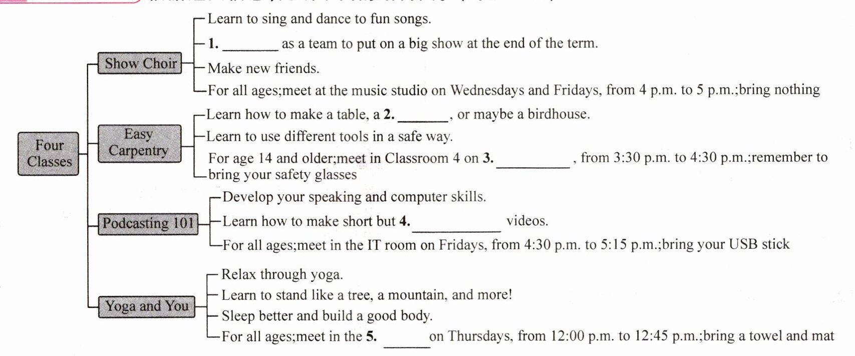 4. 【教材原句】Then join us for a yoga class. 那么来和我们一起上瑜伽课吧。