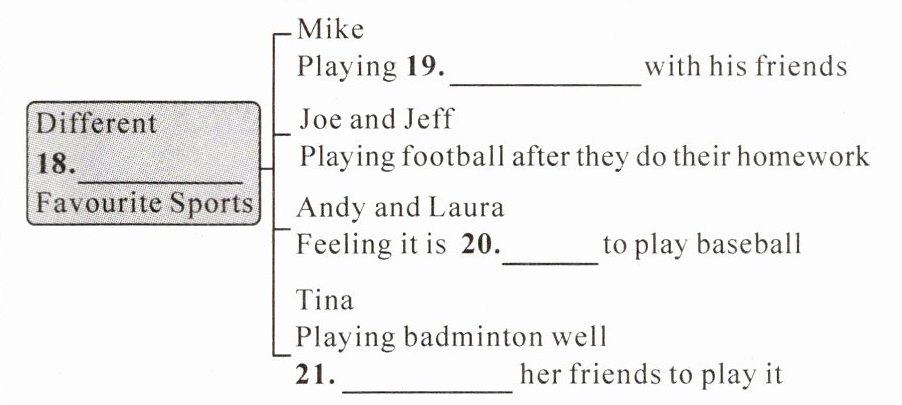 18. Students 19. basketball 20. fun 21. Teaching 22. My favourite sport is playing ping-pong. Because I think it is interesting. / ...