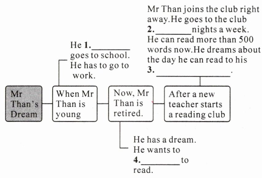 There is a new teacher at the school in his village. The teacher starts a reading club to teach adults(成年人) to read. Of course, Mr Than joins the club right away. Now, he goes to the club two nights a week.