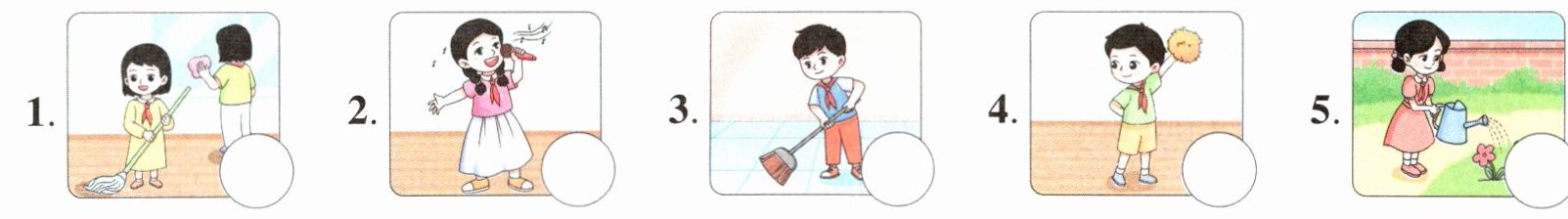I'm sweeping the floor. Those (那些) are Lulu and Nana. They are cleaning the room. Miss Green is cooking. And Annie is watering the flowers. Labour Group