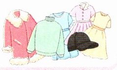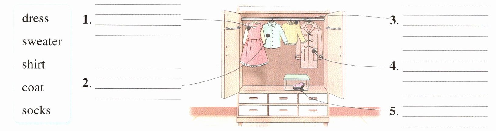 1. dress 2. shirt 3. sweater 4. coat 5. socks