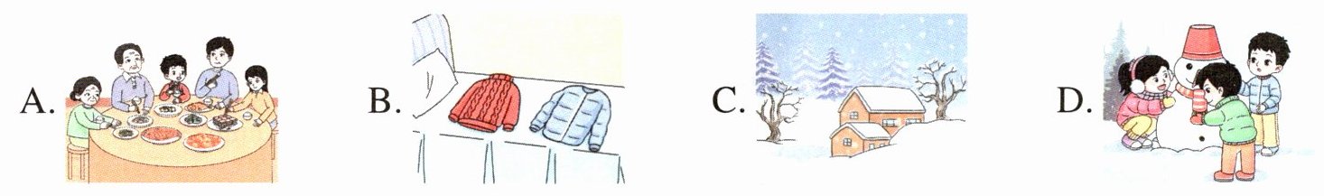 三波波正在用PPT向大家介绍他最喜欢的季节。给下列句子选择相应的图片。