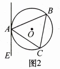 (2)如图2,$AB$不是$\odot O$的直径,求证:$AE$是$\odot O$的切线。