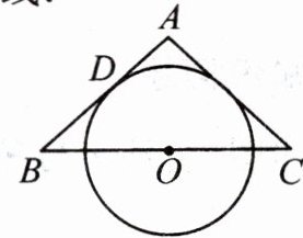 5. (教材九上P98例1)如图,$\triangle ABC$为等腰三角形,$O$是底边$BC$的中点,腰$AB$与$\odot O$相切于点$D$,求证:$AC$是$\odot O$的切线。