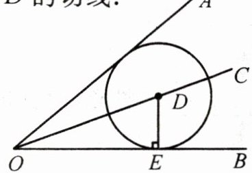 4. 【例2】如图,$D$是$\angle AOB$的平分线$OC$上任意一点,过点$D$作$DE\perp OB$于点$E$,以$DE$为半径作$\odot D$。求证:$OA$是$\odot D$的切线。