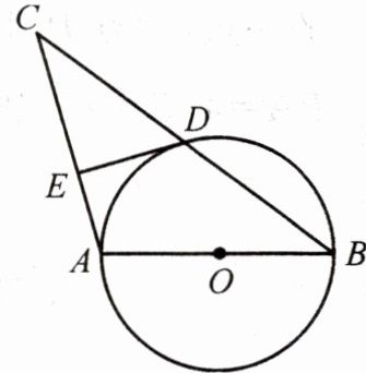 8. 如图,$AB$是$\odot O$的直径,$\odot O$过$BC$的中点$D$,且$DE\perp AC$于点$E$。求证:$DE$是$\odot O$的切线。
