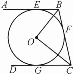 9. (教材九上P102习题T11变式)如图,直线$AB$,$BC$,$CD$分别与$\odot O$相切于点$E$,$F$,$G$,且$AB// CD$,$OB = 6$ cm,$OC = 8$ cm.