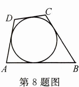 8. 如图,一圆内切于四边形$ABCD$,且$BC = 10$,$AD = 7$,则四边形的周长为(