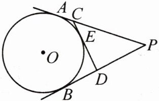 4. (2023·珠海斗门区期末)如图,$P$为$\odot O$外一点,$PA$,$PB$分别切$\odot O$于点$A$,$B$,$CD$切$\odot O$于点$E$,分别交$PA$,$PB$于点$C$,$D$. 若$PA = 8$,则$\triangle PCD$的周长为(