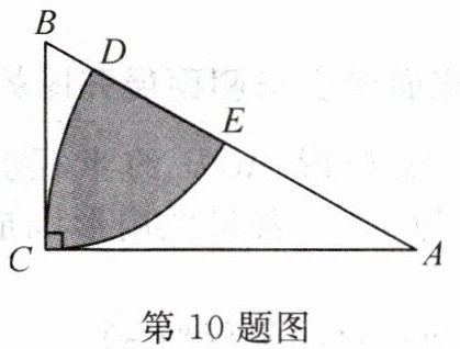 10. 如图,在$Rt\triangle ABC$中,$\angle ACB = 90^{\circ}$,$\angle A = 30^{\circ}$,$AC = \sqrt{3}$,分别以点A,B为圆心,AC,BC的长为半径画弧,分别交AB于点D,E,则图中阴影部分的面积是