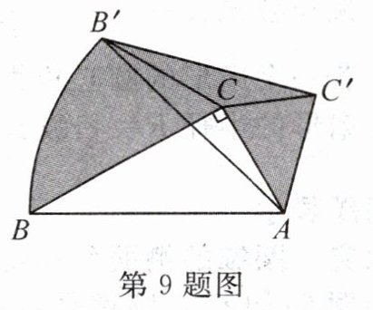 9. 如图,将含60°角的直角三角形ABC绕顶点A顺时针旋转45°后得到$\triangle AB'C'$,点B经过的路径为$\overset{\frown}{BB'}$.若$\angle BAC = 60^{\circ}$,AC=1,则图中阴影部分的面积是