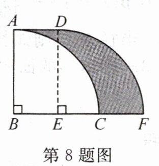 8. 如图,扇形ABC圆心角为90°,将扇形ABC沿着射线BC方向平移,当点B落到线段BC中点E时平移停止.若AB=4,则图中阴影部分的面积是