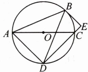 22. (2024·深圳)如图,$ A $,$ B $,$ C $,$ D $ 是 $ \odot O $ 上的四点,$ AC $ 是直径,$ AB = BD $,$ \odot O $ 的切线 $ BE $ 交 $ DC $ 的延长线于点 $ E $.