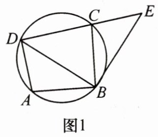 21. (2023·中山期末)如图 1,四边形 $ ABCD $ 是圆的内接四边形,$ AB = BC $,将 $ \triangle ABD $ 绕点 $ B $ 旋转得到 $ \triangle CBE $.