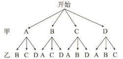 一共有$12$种等可能的结果$,$其中乙选中球拍$C$的结果有$3$种$.$