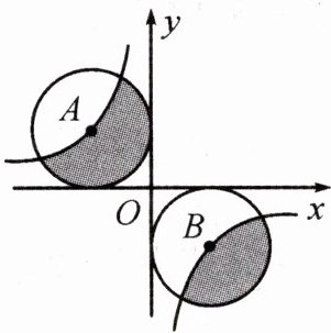 9. 如图,$ \odot A $ 和 $ \odot B $ 都与 $ x $ 轴和 $ y $ 轴相切,圆心 $ A $ 与圆心 $ B $ 都在反比例函数 $ y = -\frac{1}{x} $ 的图象上,则图中阴影部分的面积为