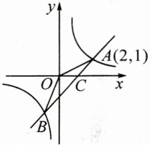 (1)得,两函数的解析式分别为y=x-1,y= $\frac{2}{x}$.联立$\begin{cases} y=x-1 \\ y= \frac{2}{x} \end{cases}$,解得$\begin{cases} x=2 \\ y=1 \end{cases}$或$\begin{cases} x=-1 \\ y=-2 \end{cases}$.