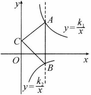 12. 如图,平行于 $ y $ 轴的直线分别交 $ y = \frac{k_{1}}{x} $ 与 $ y = \frac{k_{2}}{x} $ 的图象(部分)于点 $ A $,$ B $,$ C $ 是 $ y $ 轴上的动点,则 $ \triangle ABC $ 的面积为( )