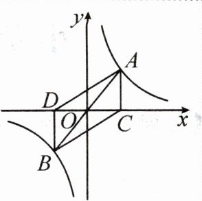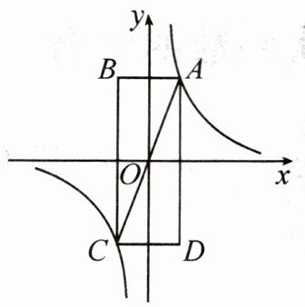 7. 【例 4】如图,原点 $ O $ 是矩形 $ ABCD $ 的对称中心,顶点 $ A $,$ C $ 在反比例函数 $ y = \frac{k}{x} $ 的图象上,$ AB // x $ 轴。若矩形 $ ABCD $ 的面积为 $ 8 $,则反比例函数的解析式是