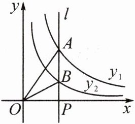 10. 如图,直线 $ l \perp x $ 轴于点 $ P $,且与反比例函数 $ y_{1} = \frac{k_{1}}{x}(x > 0) $ 及 $ y_{2} = \frac{k_{2}}{x}(x > 0) $ 的图象分别交于点 $ A $,$ B $,连接 $ OA $,$ OB $,已知 $ \triangle OAB $ 的面积为 $ 3 $,则 $k_{1} - k_{2} $ 的值等于( )