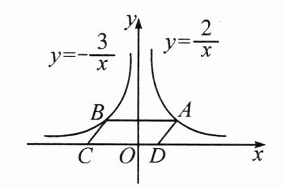 11. 【例 6】如图,$ A $ 是反比例函数 $ y = \frac{2}{x}(x > 0) $ 的图象上任意一点,$ AB // x $ 轴交反比例函数 $ y = -\frac{3}{x} $ 的图象于点 $ B $,以 $ AB $ 为边作平行四边形 $ ABCD $,其中点 $ C $,$ D $ 在 $ x $ 轴上,则 $ S_{□ ABCD} = $______。
