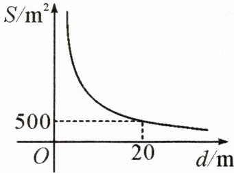 个容积为V(V为定值,单位:m3)的圆柱形天然气储存室,储存室的底面积S(m²)与其深度d(m)是反比例函数关系,它的图象如图所示.