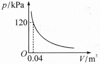 (1)设函数解析式为$ p=\frac{k}{V} $.根据图象可得$ k=pV=120×0.04=4.8 $.$ \therefore p=\frac{4.8}{V} $.$ \therefore $当$ p=150 $时,$ V=\frac{4.8}{150}=0.032 $.$ \therefore \frac{4}{3}×3r^{3}=0.032 $,解得$ r=0.2 $.$ \because k=4.8>0 $,$ \therefore p $随$ V $的增大而减小.$ \therefore $要使气球不会爆炸,则$ V\geq0.032 $,此时$ r\geq0.2 $.$ \therefore $气球的半径至少为0.2 m时,气球不会爆炸.