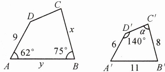 ∴∠D'=∠D=140°,∠α=∠C,$\frac{AD}{A'D'}=\frac{AB}{A'B'}=\frac{BC}{B'C'}$.
