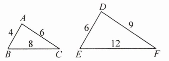 4. 已知△ABC∽△DEF,相似比为$\frac{3}{4}$。