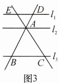 问题 5:如图 3,l₁//l₂//l₃,直线 EC 与直线 DB 交于点 A,依据问题 3,你又能得到什么结论?