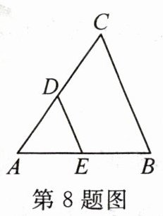 8. 如图,D,E 分别是 AC,AB 的中点,则△ADE 与△ACB 的相似比为