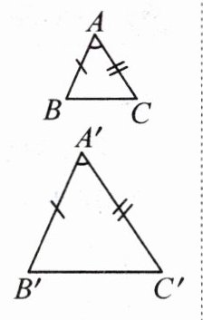 小结:成比例 相等 $\frac {AB}{A'B'}=\frac {AC}{A'C'},\angle A=\angle A'$ △ABC∽△A'B'C'